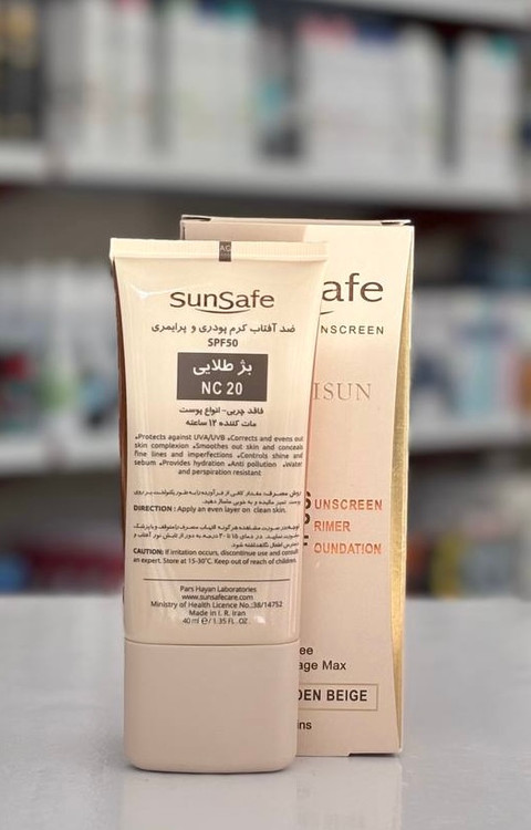 ضدآفتاب کرم پودری و پرایمری SPF50 سان سیف مدل مکیسان. این کرم با فرمولاسیون پیشرفته، سه نیاز اساسی پوست شما را همزمان پوشش میدهد.