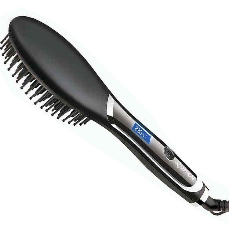 برس حرارتی صافکننده مو پرومارون مدل RL-1113، با صفحات متوسط از جنس سرامیک پیشرفته، دارای دکمهی روشن/خاموش، نمایشگر دیجیتال، حرارت قابل تنظیم از 160 الی 230 درجه با توان حرارتی 60 وات و گرمایش سریع، گستره دما 220 تا 240 درجه سانتیگراد
